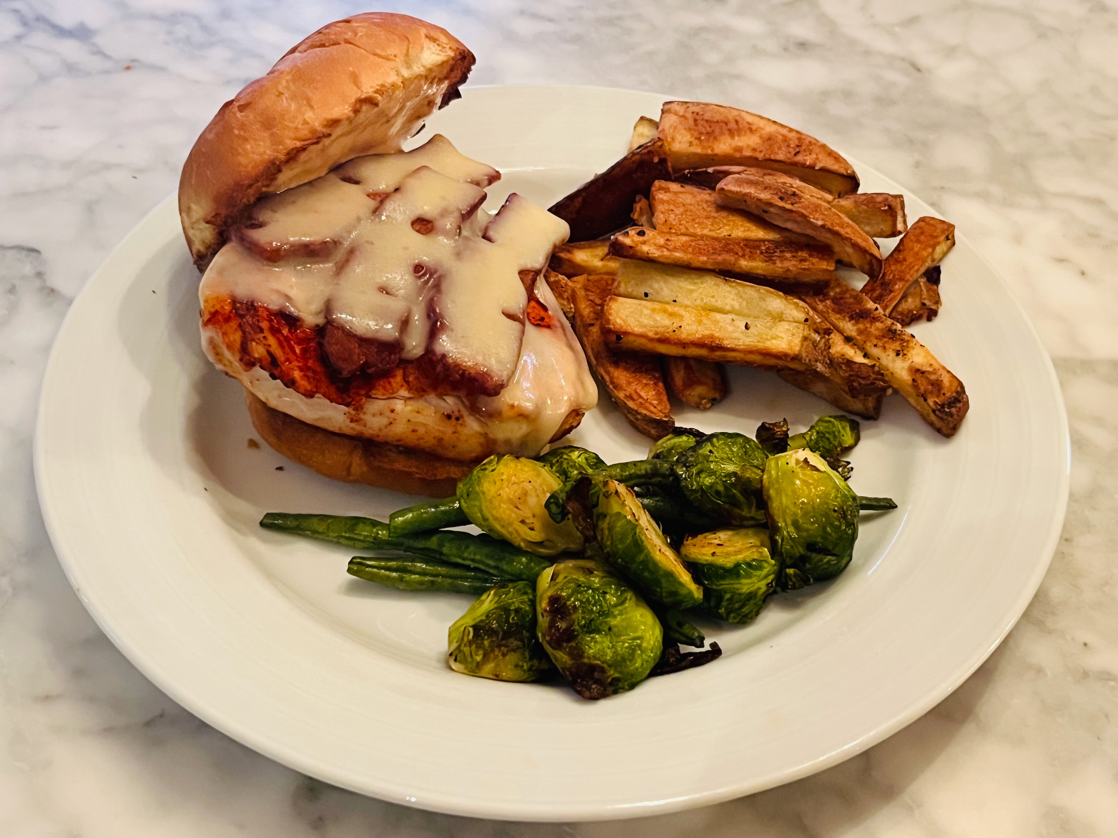 To assemble the sandwich, place the chicken on your bun (make sure you toast for a minute on the grill it first if you like a warm bun) and add your favorite sauce. Feel free to add lettuce and tomato if you’d like, but our household likes to keep it simple. There is no shame in skipping the bun either, it is just as delicious with a fork and knife.